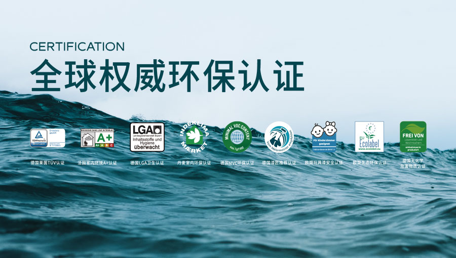 SIGNEO诗珑秉承德国文化的严谨、匠人态度,荣膺「德国LGA卫生制造标准」、「欧盟玩具漆安全」、「德国莱茵TÜV检测」、「法国A+」、「欧盟生态环保」、「德国无化学危害物质」、「丹麦室内环保」、「德国MVC环保」等多项国际权威环保认证。