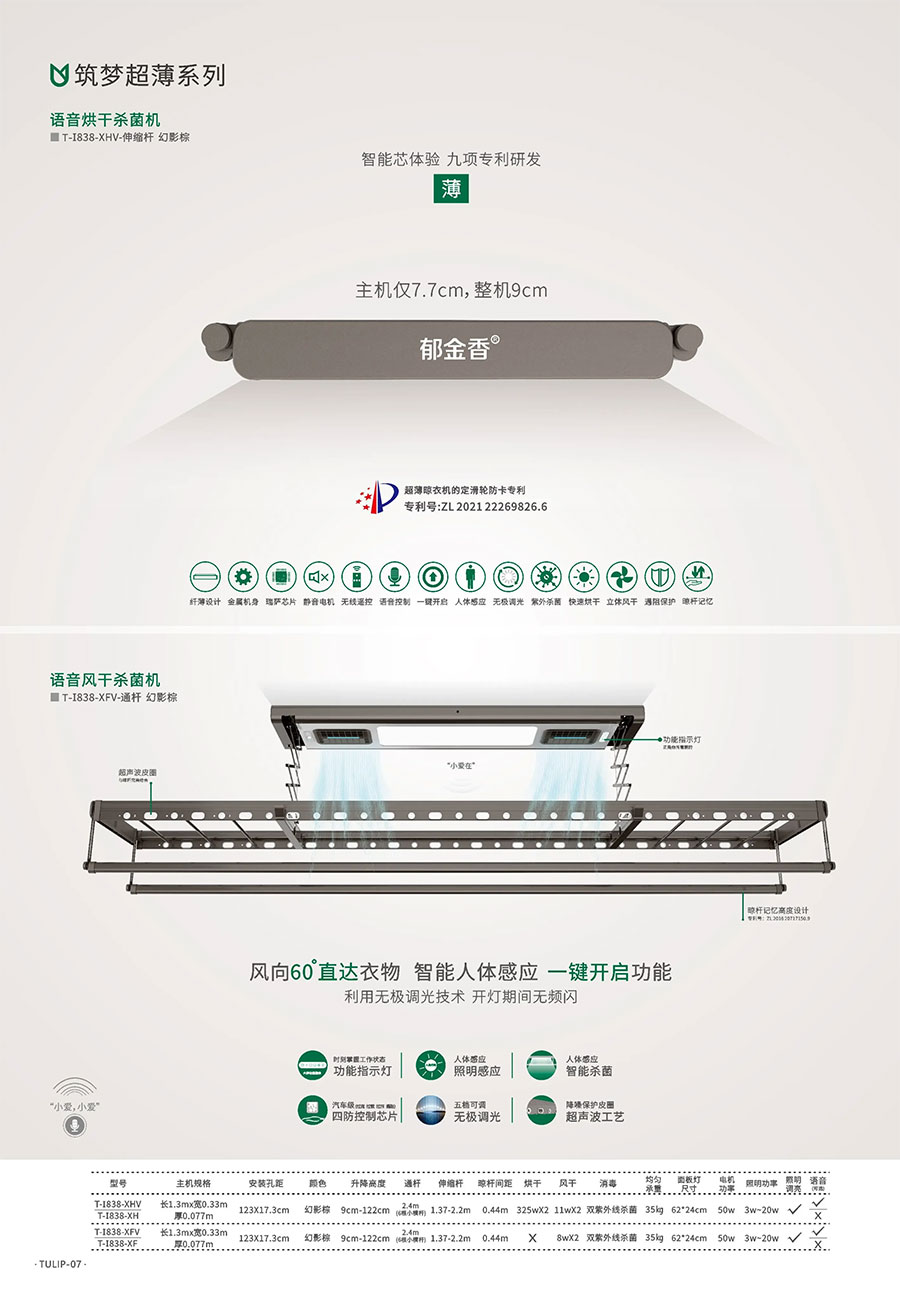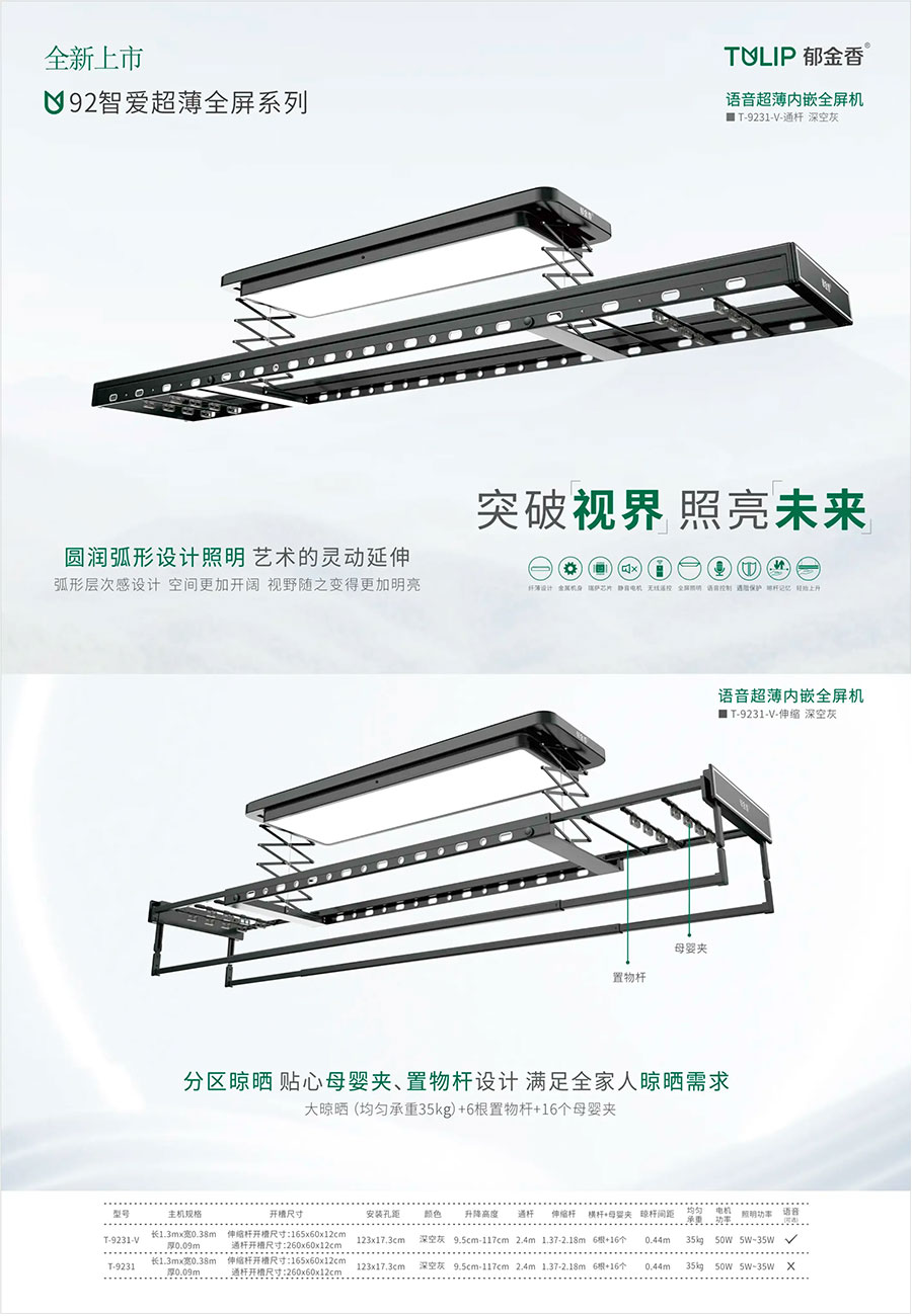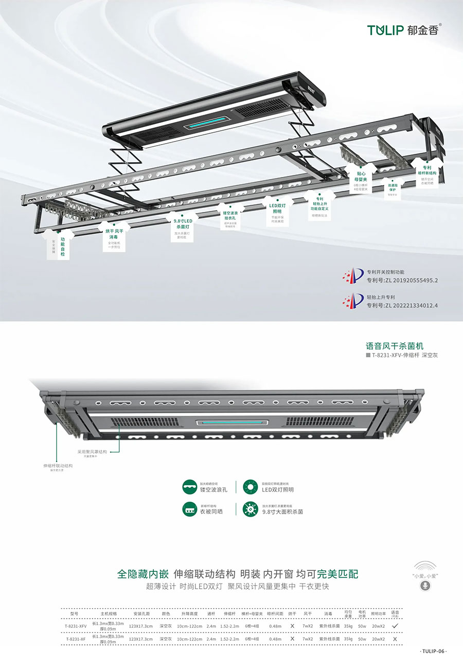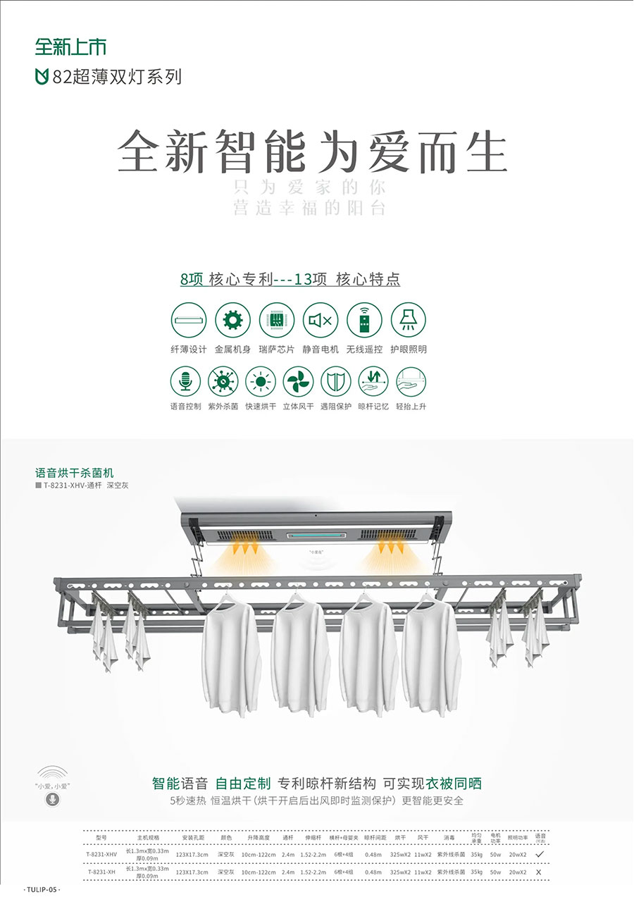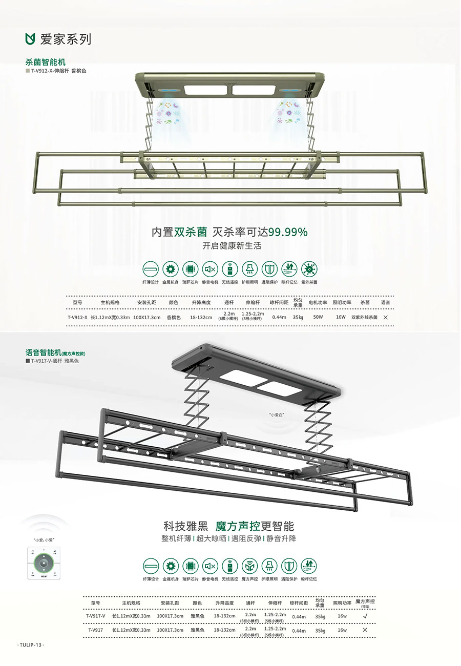 主要产品:郁金香、晒得乐牌智能晾晒、智能家居、家居精品