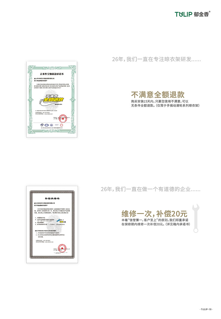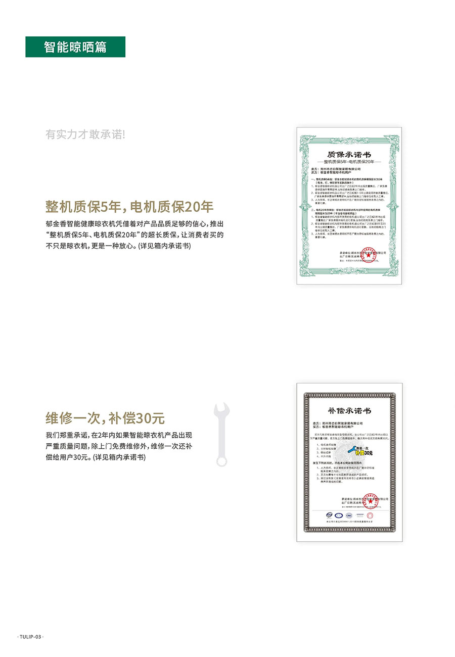 2016年,推出智能晾衣机,并承诺“整机质保5年,电机质保20年”;
