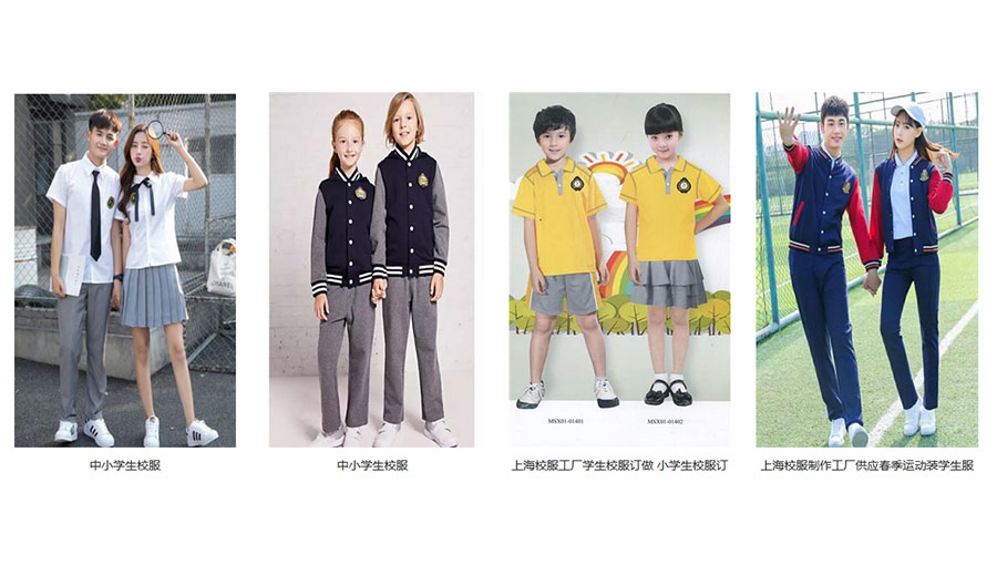 主营业务:各种款式学生校服、幼儿园园服、小学生校服、中学生校服、学生装、正装校服、运动校服等。