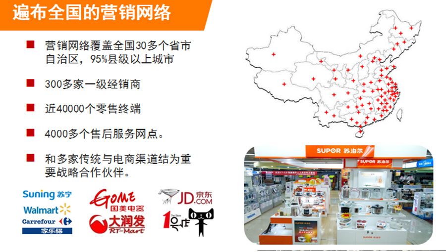苏泊尔重视开拓国外市场,产品出口欧美、日本、中东、东南亚等国家,外销份额逐年扩大。苏泊尔售后服务体系健全,1800多个服务网点遍布全国,给消费者提供了最直接专业的售后服务。