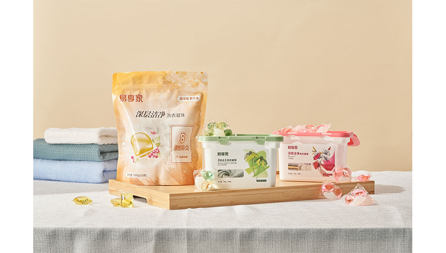 主要产品:易享家(洗衣凝珠、洗衣液、洗洁精、柔顺喷雾、除菌液),花见月(洗衣凝珠、洗衣液、留香珠、洗衣精华液)