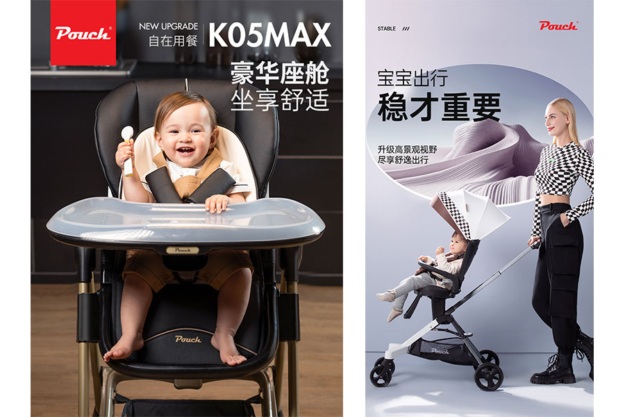 Pouch为每个家庭提供宝宝从出生到各个阶段的科学舒适出行方案,产品线包括汽车儿童安全座椅、推车、餐椅、学步车等,让孩子在每一个阶段都能感受到Pouch带来的安全陪伴。