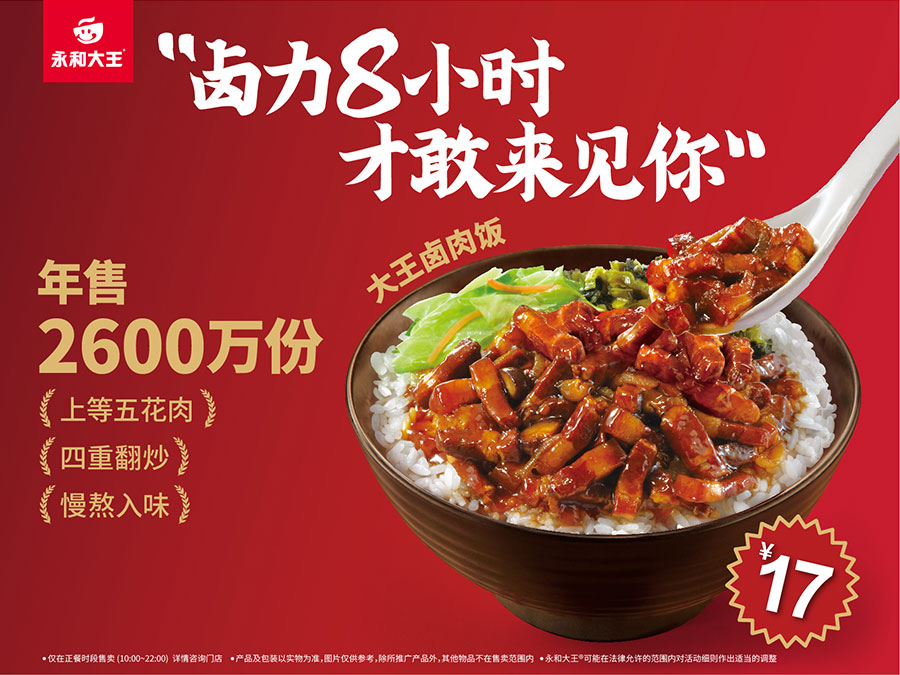 永和大王始终坚持:提供超值的美味和服务,随时随地让顾客放心享用。用心传递好味道,不断为中式美食的发展加油,致力成为快餐界的第一中式美食品牌。