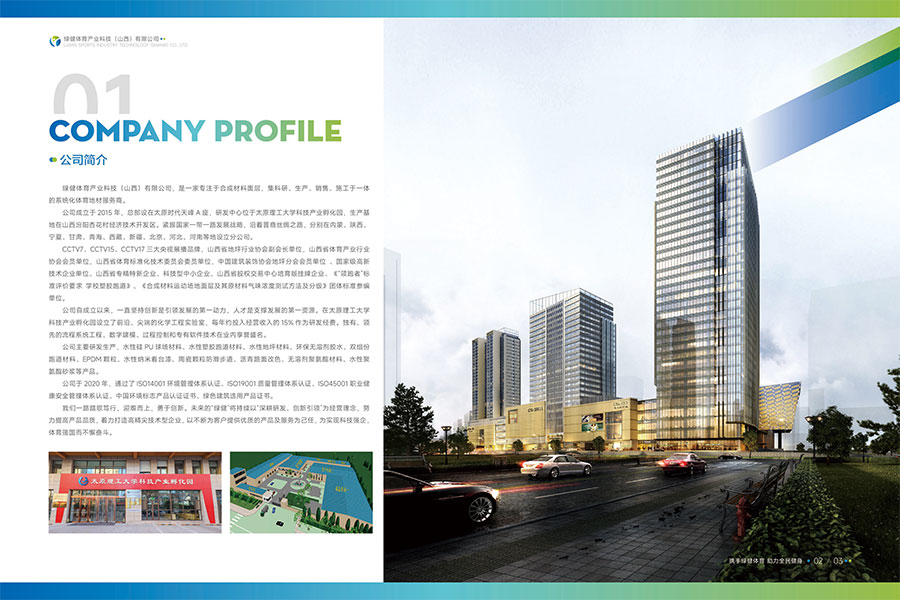 绿健体育产业科技(山西)有限公司,是一家专注于合成材料面层,集科研、生产、销售、施工于一体的系统化体育地材服务商。