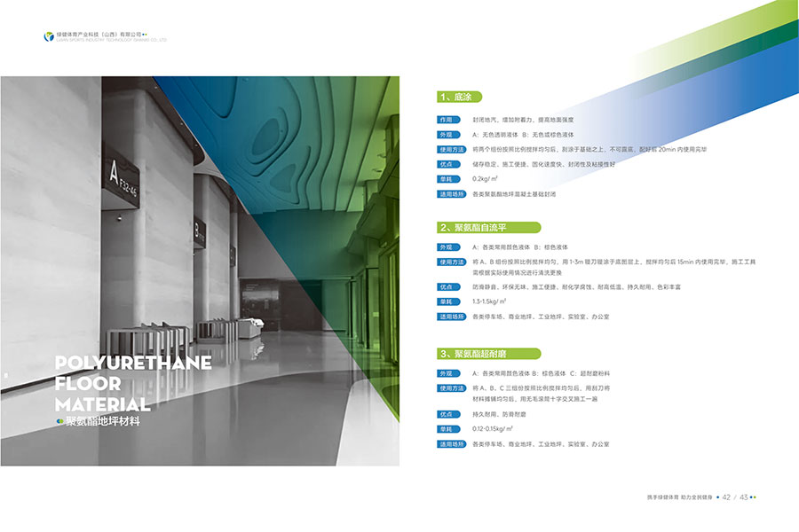 绿健体育主要研发生产,水性硅PU球场材料、水性塑胶跑道材料、水性地坪材料、环保无溶剂胶水、双组份跑道材料、EPDM颗粒、水性纳米看台漆、陶瓷颗粒防滑步道、沥青路面改色、无溶剂聚氨酯材料、水性聚氨酯砂浆等产品。