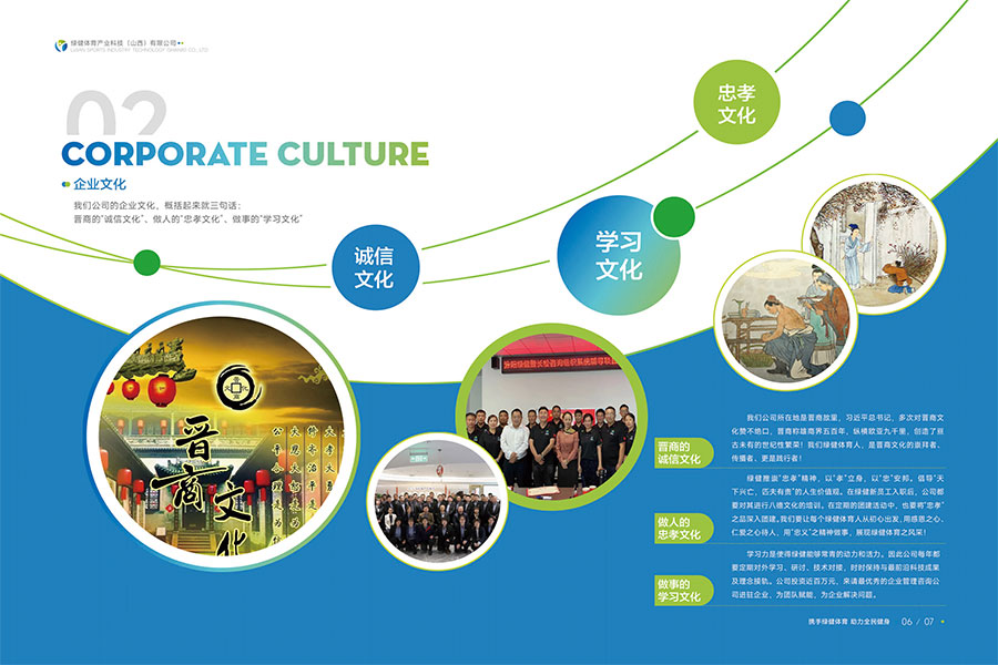 绿健体育成立于2015年,总部设在太原时代天峰A座,研发中心位于太原理工大学科技产业孵化园,生产基地在山西汾阳杏花村经济技术开发区。紧跟国家一带一路发展战略,沿着晋商丝绸之路,分别在内蒙、陕西、宁夏、甘肃、青海、西藏、新疆、北京、河北、河南等地设立分公司。