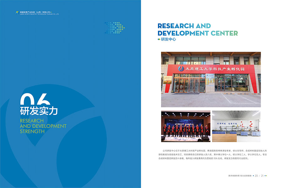 绿健体育自成立以来,一直坚持创新是引领发展的第一动力,人才是支撑发展的第一资源。在太原理工大学科技产业孵化园设立了前沿、尖端的化学工程实验室,每年约投入经营收入的15%作为研发经费。独有、领先的流程系统工程、数字建模、过程控制和专有软件技术在业内享誉盛名。