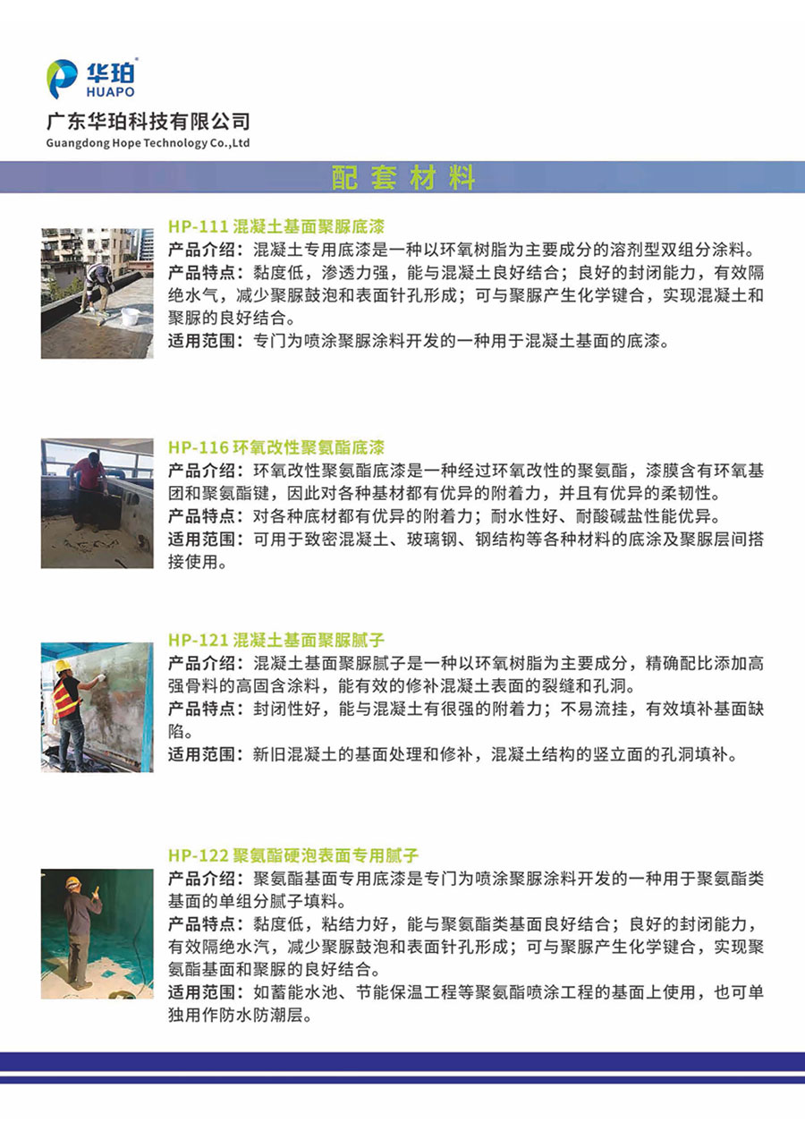 广东华珀科技有限公司成立于2015年,是一家专门从事聚脲及聚脲配套产品自主研发、生产、销售及施工于一体的国家高新技术企业。华珀公司拥有2项发明专利,12项实用新型专利,参与国家级、行业级、团体级等聚脲相关标准编写8项,发表相关论文10多篇。