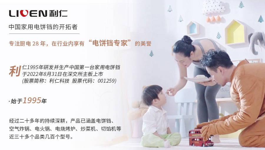 利仁成立之初便专注于电饼铛的研发及生产,是国内电饼铛领域的先驱者。经过二十多年的持续深耕,利仁整体已形成了集设计、研发、生产、销售、服务于一体的完整业务布局,线上与线下渠道相结合的完整营销体系。利仁始终秉承着“好产品与百姓共享,专业铸就品牌,服务创造价值”的经营理念,致力于为消费者提供高质量小家电产品与更好、更便捷的厨房生活解决方案。