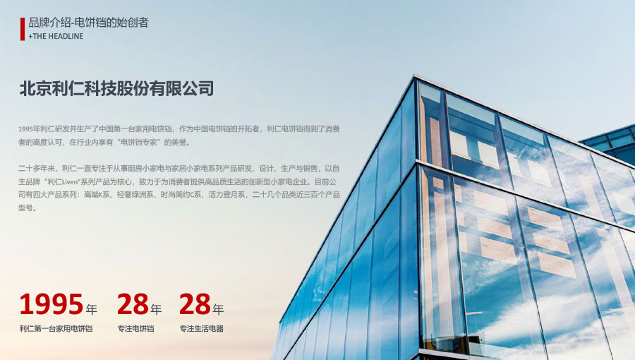 北京利仁科技股份有限公司成立于1998年,是一家专注于从事厨房小家电与家居小家电系列产品研发、设计、生产与销售,以自主品牌“利仁Liven”系列产品为核心,致力于为消费者提供高品质生活的创新型小家电企业。