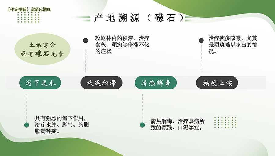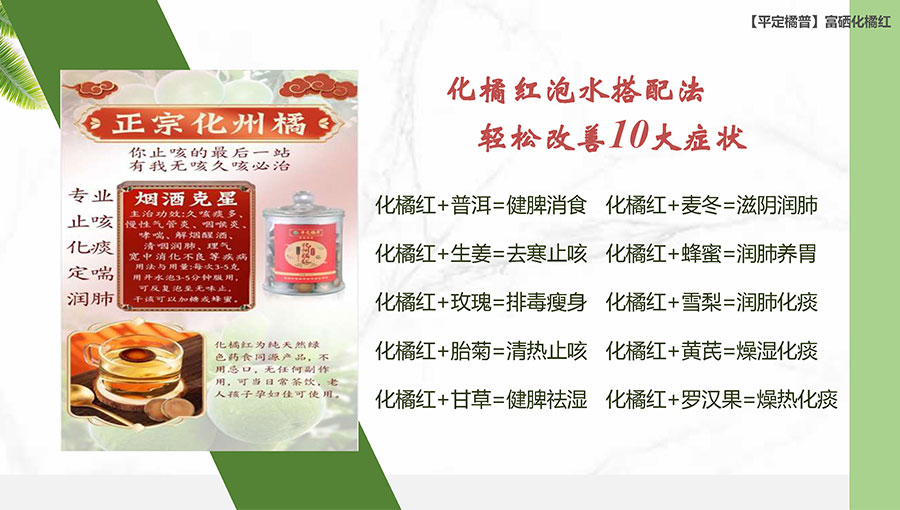 主要产品:“平定橘普”富硒化橘红药食同源衍生产品