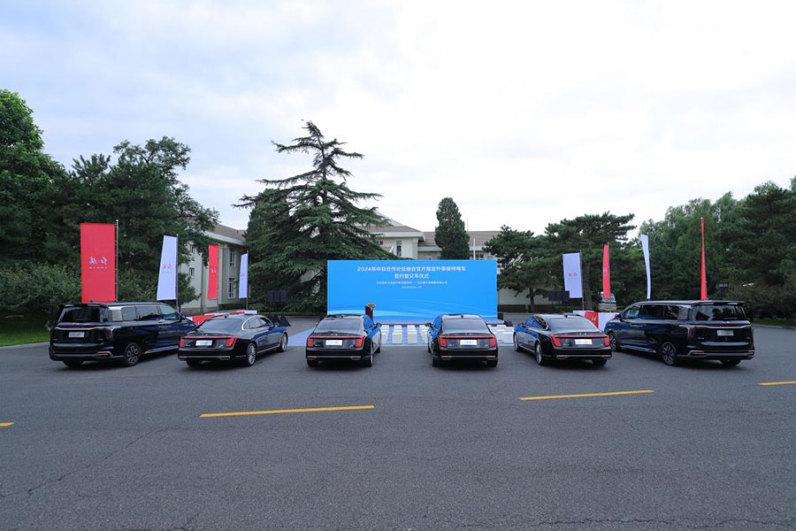 红旗将提供620辆旗舰商务座驾,为本次论坛峰会鼎力护航。其中,60辆新红旗H9以卓越姿态交付公安部,光荣承担前导警车重任;560辆新红旗H9、红旗HQ9、红旗国悦则交付外交部,作为贵宾接待的专属座驾,以豪华舒享敬迎来宾。