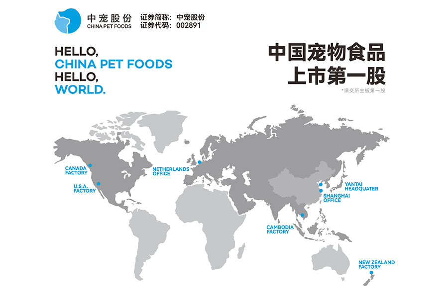26年来,中宠股份秉承着“宠物既是人类的朋友,更是我们的家人”的理念,持续为全球爱宠提供高品质的产品。产品已销往全球五大洲82个国家和地区,自主品牌销往全球五大洲68个国家和地区。