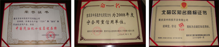 公司获得《中国名优产品》、《全国消费者用户满意企业》等荣誉称号,并已通过了ISO9001:2000质量管理体系认证、国家强制性产品“三C”认证以及燃油助力车许可证,公司连续三年获得区先进企业,产品也荣获多项殊荣、并覆盖欧美及东南亚市场。