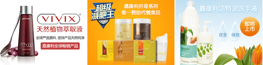 主要产品:VIVIX天然植物萃取液、天然营养保健食品、体重控制系列、家居清洁系列、健康美容系列
