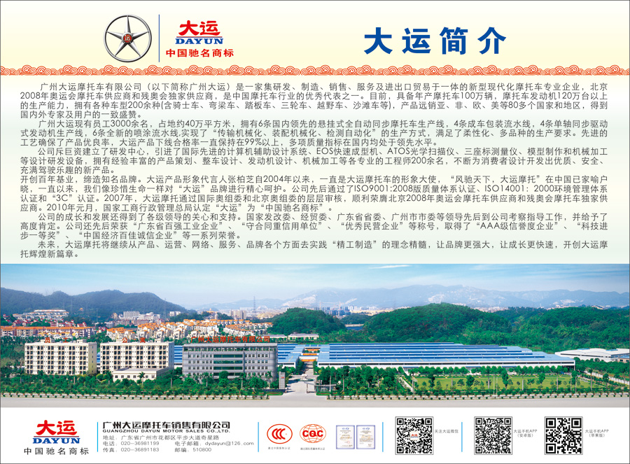 主要产品:大运两轮、三轮摩托车
