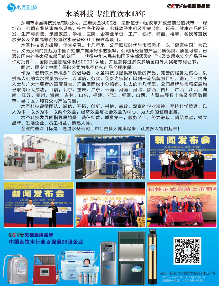 主要产品:水圣牌、长寿村牌、纳斯克牌净水器、空气净化器