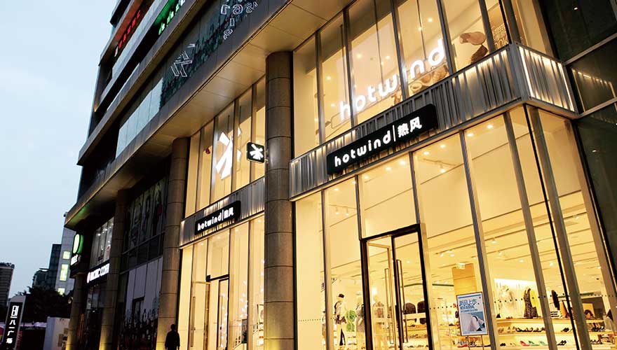 hotwind•热风目前已拥有品牌共享商铺逾800家,销售网络覆盖上海、北京、深圳、广州、南京、成都、重庆等140多个全国大中型城市,以及新加坡等东南亚国家,并与恒隆、大悦城、来福士、万达、吉之岛等众多国内外知名商业地产品牌形成战略联盟。